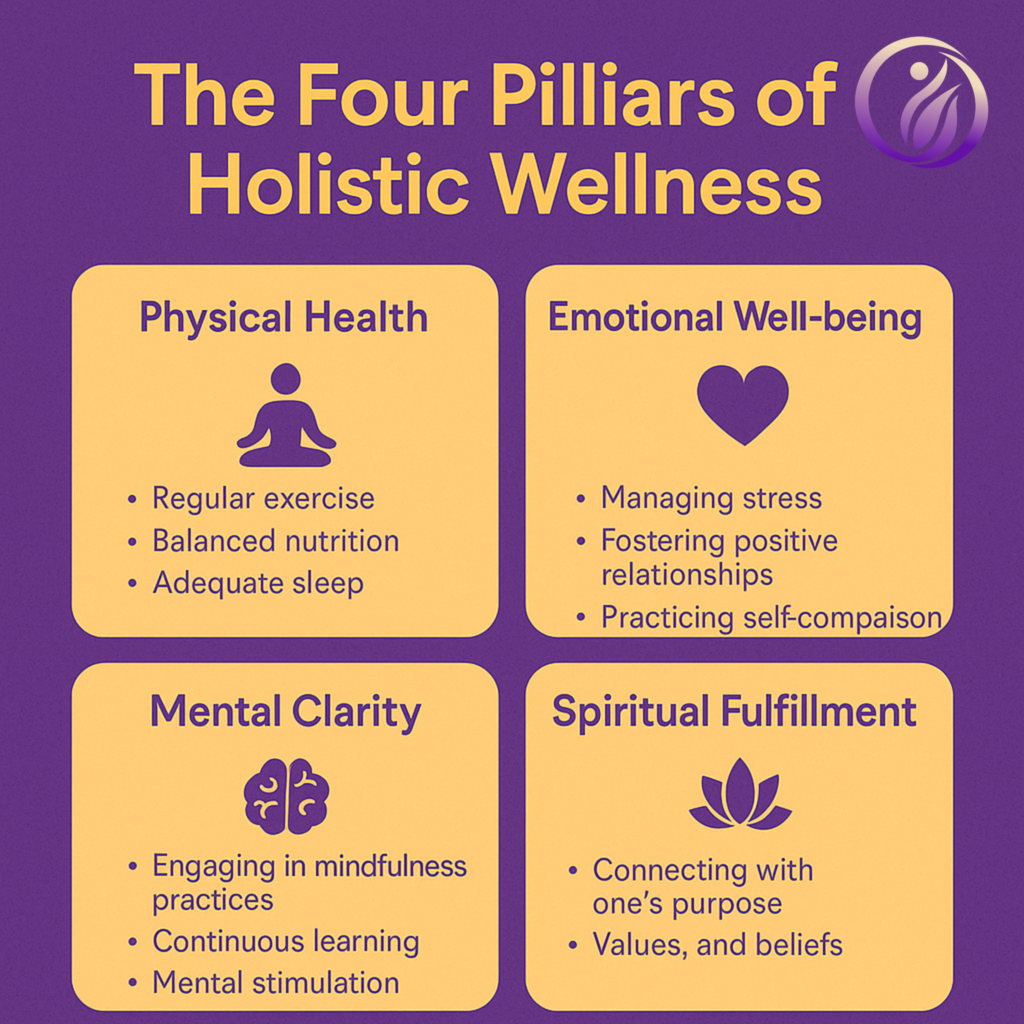 Let’s break down the core components that make up holistic wellness. These four pillars are deeply interconnected and essential to overall harmony.